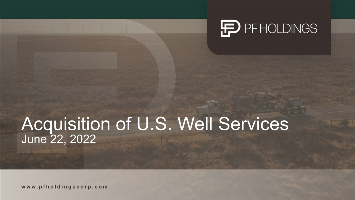 Acquisition of U.S. Well Services June 22, 2022 www . pf hol di ngs c or p. c om