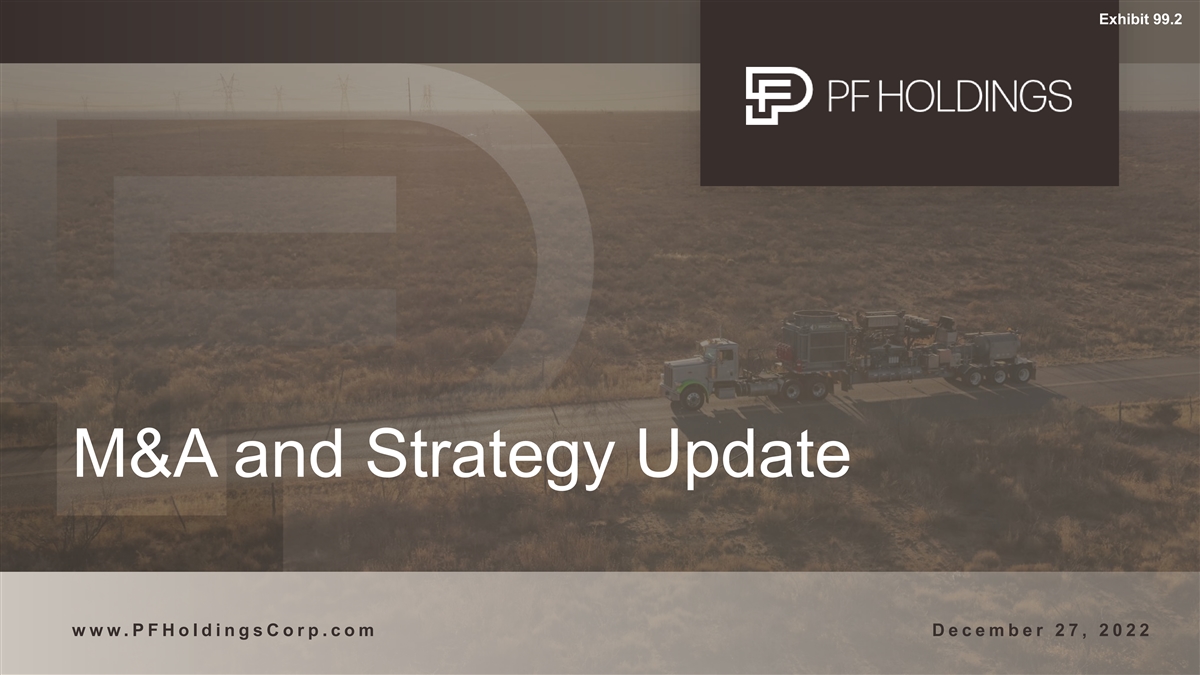 Exhibit 99.2 M&A and Strategy Update w w w . P F H o l d i n g s C o r p . c o m D e c e m b e r 2 7 , 2 0 2 2